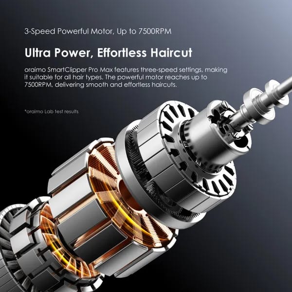 oraimo SmartClipper Pro Max features three-speed settings, making it suitable for all hair types. The powerful motor reaches up to 7500RPM, delivering smooth and effortless haircuts.