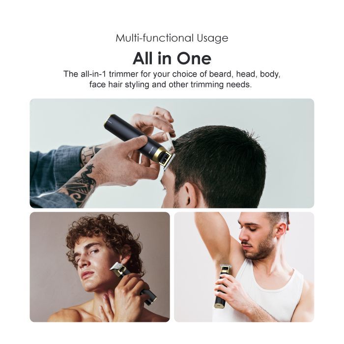 Multipurpose trimmer with adjustable speeds and up to 150 minutes of runtime. Type‑C charging; precision blade. Ideal for beard, head and body grooming.